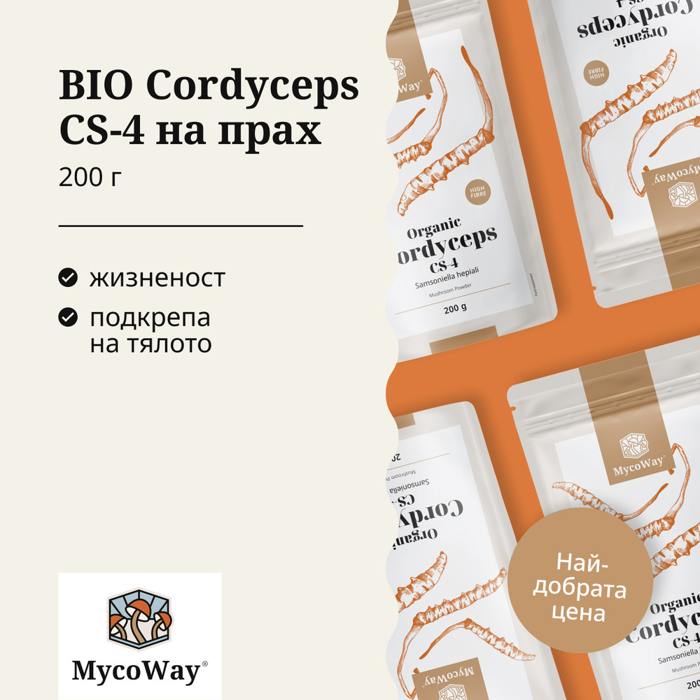 BIO Cordyceps CS-4 на прах представлява супер избор за всеки, тъй като прахообразната форма е изключително универсална за употреба. Може лесно да се разбърка в чаша вода, сок или друга течност, както и да се добави към любимия ви смути, кисело мляко или сутрешна каша.