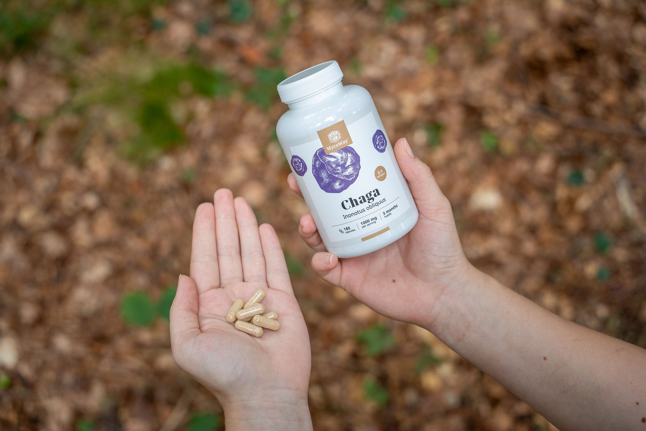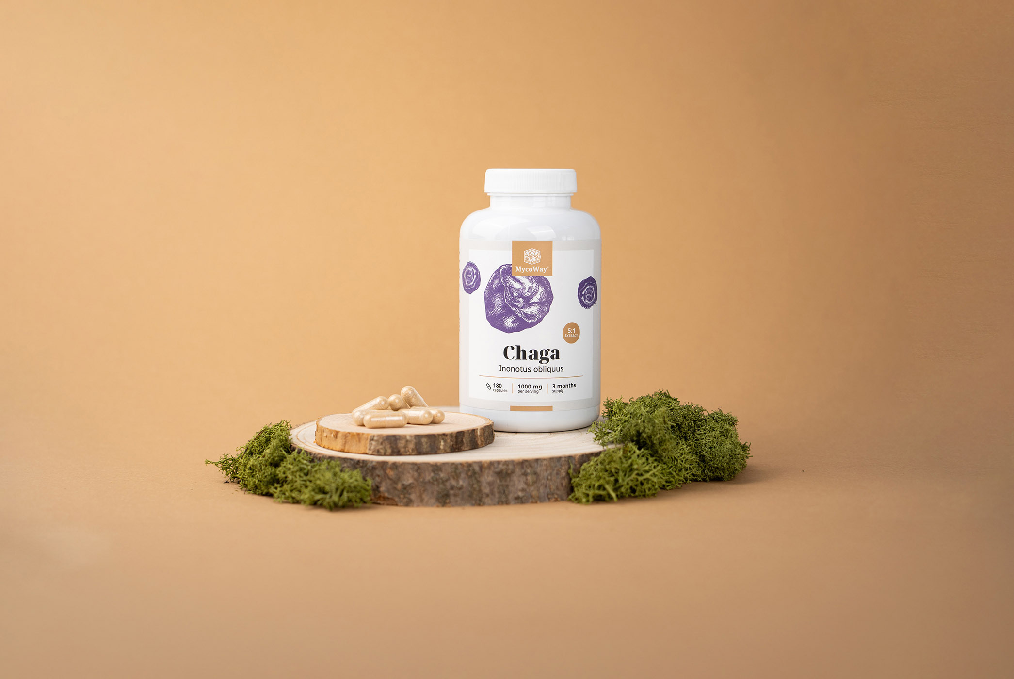 Капсулите съдържат екстракта в съотношение 5:1, което означава, че всеки грам екстракт е еквивалентен на 5 грама суха чага, което осигурява ефективна и мощна подкрепа за тялото ви.