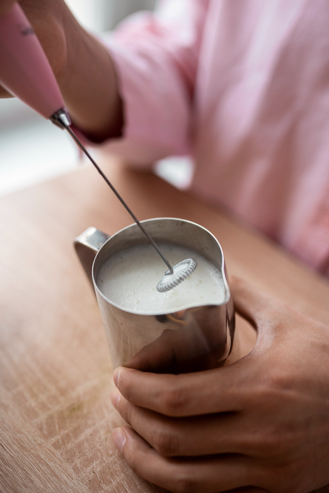 Разпенителят за мляко не е предназначен само за правене на пяна – той работи перфектно и като миксер за напитки на прах. За броени секунди той лесно смесва праха с вода, мляко или растителни напитки – без грудки и без излишно усилие с ръчно разбъркване.