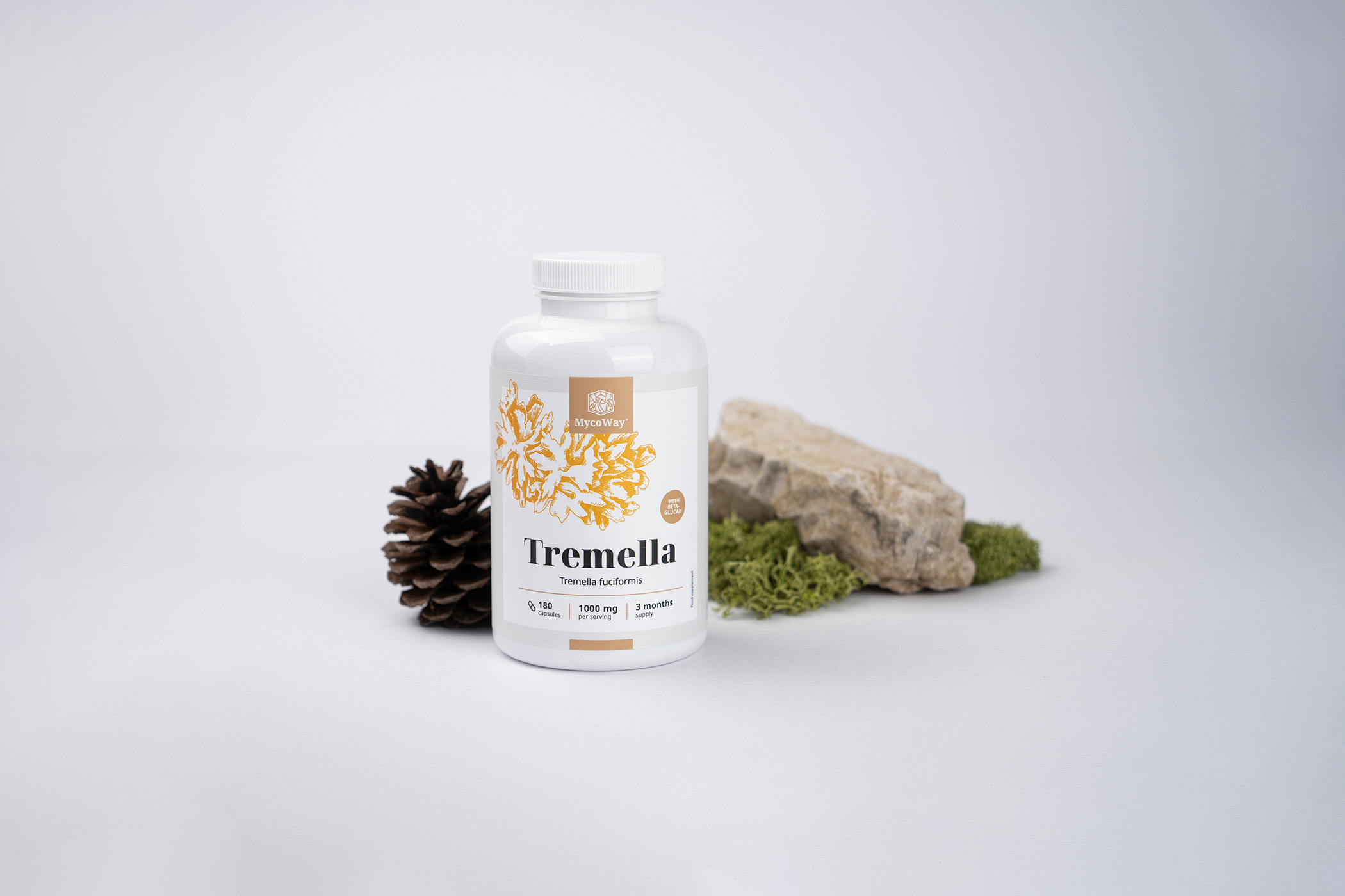 Съставки: прах от гъба тремела (Tremella fuciformis), микрокристална целулоза, силициев диоксид, растителна капсула (HPMC; хидроксипропилметилцелулоза).
